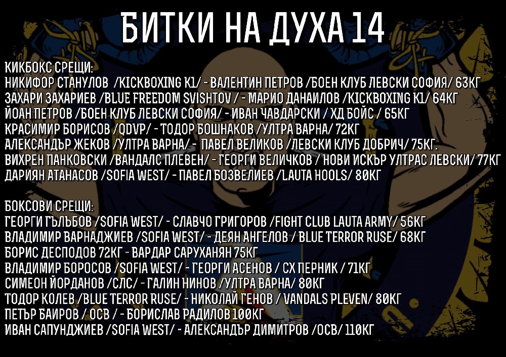 На 24 април София отново ще бъде домакин на едно от най-разпознаваемите събития сред привържениците на Левски – боксовия турнир „Битки на духа“. Тази година надпреварата ще се проведе за 14-и пореден път, а арената отново ще бъде зала „Христо Ботев“, където фенове, бойци и представители на различни левскарски организации ще се съберат за една вечер, посветена на спортния дух и синята общност.