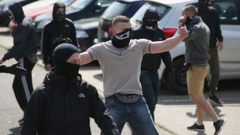 По наша информация няколко автомобила спират пред сградата, а пътуващите в тях излизат с маски и нападат събралите се на мястото червени фенове.